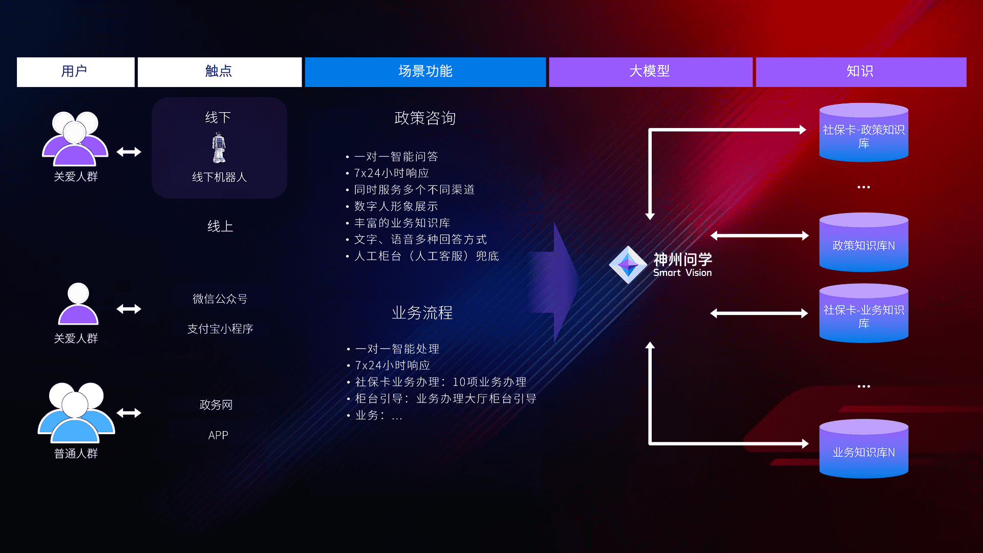 • 线上线下全覆盖:线上提供微信公众号、、、支付宝小程序、、政务网、、app多种渠道,,,,与线下机器人形成完整服务体系。。
