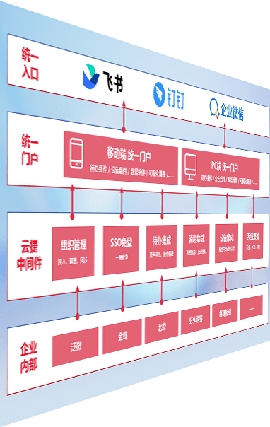 对协作平台提供支持服务,,支持企业应用与协作平台对接,,包含组织同步、、、、消息集成、、、待办集成等。。支持目前主流的协作平台:钉钉、、、、企微和飞书。。